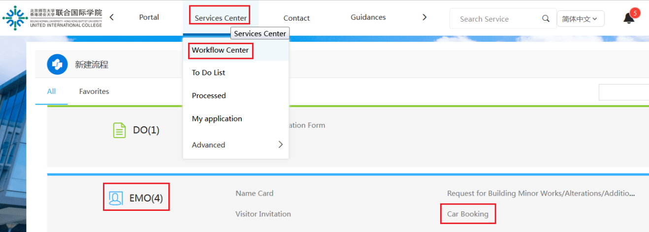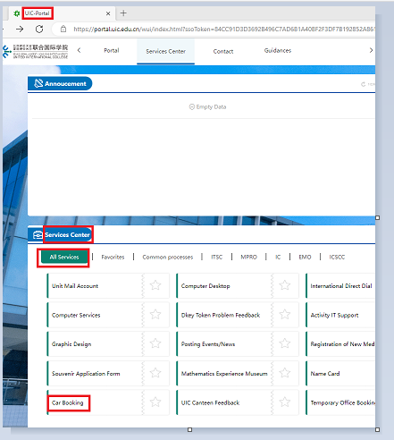3. Or find “UIC Portal-Services Center-All Services-Car Booking”, then fill in the relevant information.